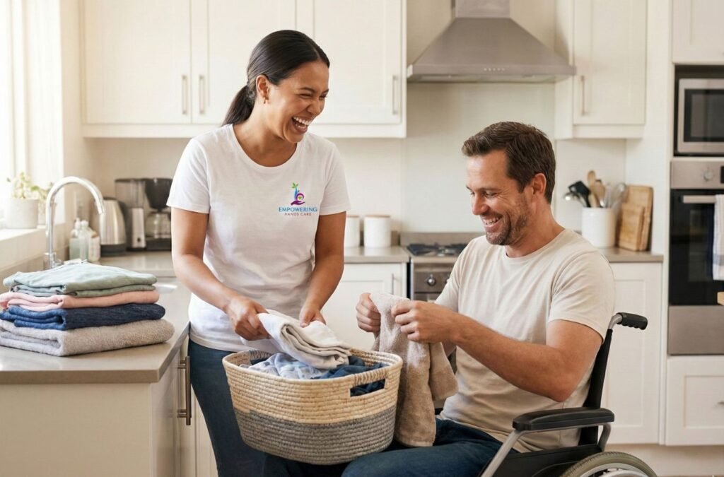 Empowering Hands Care provides reliable assistance with Household Tasks to help you maintain a clean, organised, and comfortable home environment. Our team supports both routine and occasional tasks, including sweeping, mopping, dusting, laundry, ironing, bed making, meal preparation, washing dishes, cleaning kitchens and bathrooms, and general tidying. We always adapt our approach to your home routine and preferences—whether you want hands-on guidance or require full assistance. Participants who enjoy being involved can receive step-by-step support to build skills in home management, while others may prefer for our staff to take the lead. Our focus is on creating a safe, hygienic, and functional space that supports your day-to-day comfort. We carry out every task respectfully and carefully, making sure your personal belongings and privacy are always handled with care. With a reliable and friendly team, you can enjoy the reassurance of a well-maintained home, allowing your daily routine to feel calmer, smoother, and more manageable.